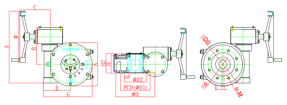 該系列蝸輪箱適用環(huán)境廣、功能全面、形式多樣(有手輪式、手輪帶鎖式等),產品共有7種型號。